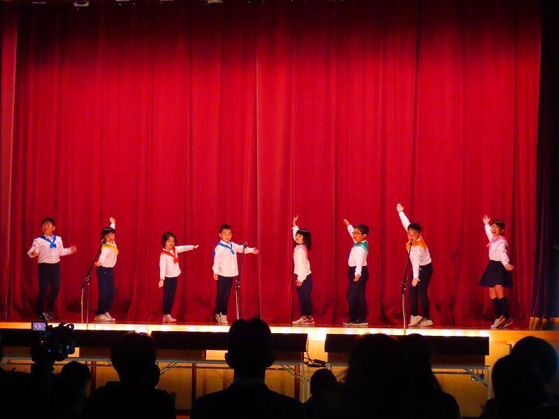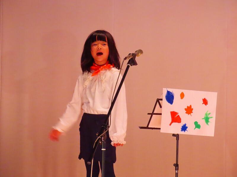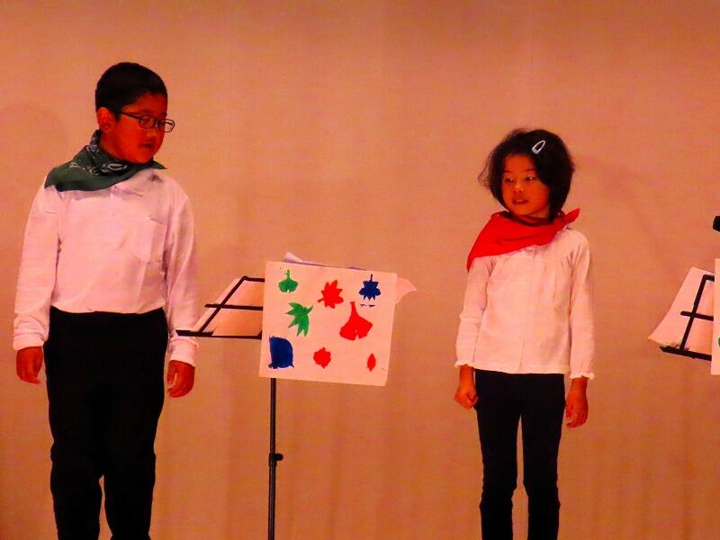 1・2年生は、国語の学習でつくった「かぞえうた」や、説明文の音読・感想発表をします。普段の国語学習を生かした発表です。