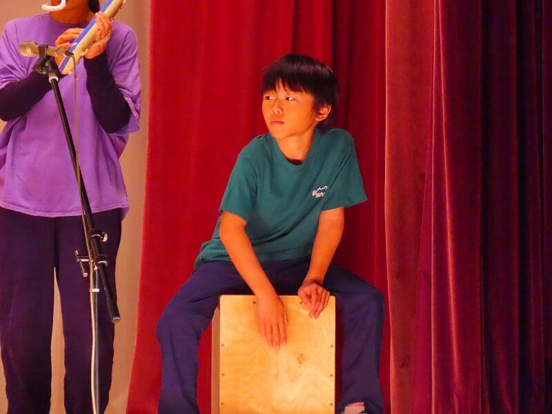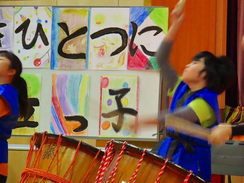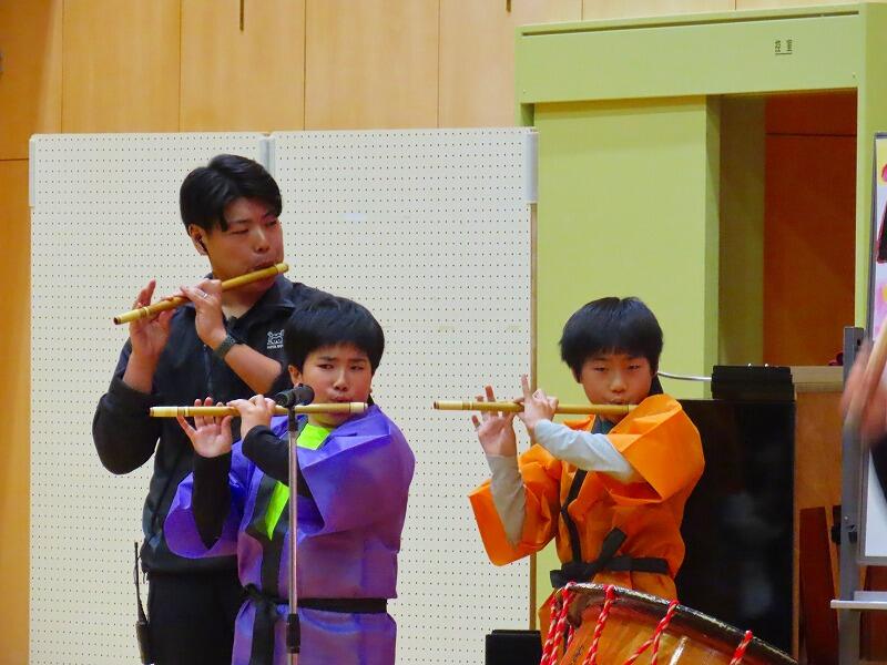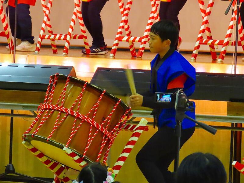 6年生担当の篠笛もかなり難しいと思われますが、積み重ねてきた練習のおかげで澄んだ音色が響き、和の雰囲気を引き立てていました。