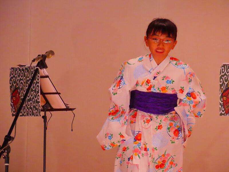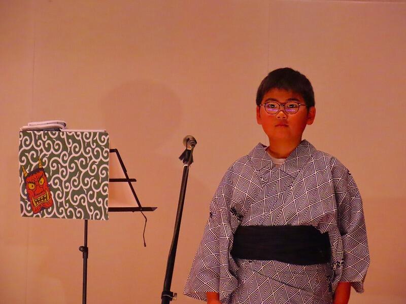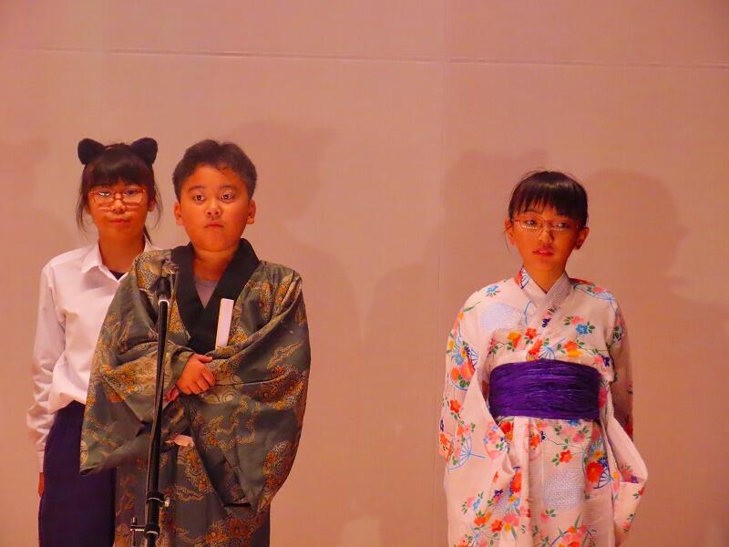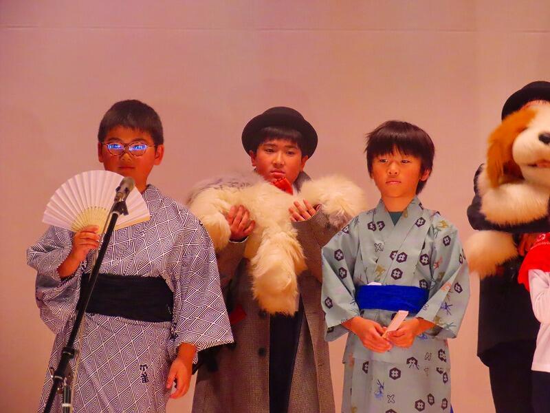 3・4年生は、落語「おにのめん」を演じます。登場人物になりきって、関西弁のせりふを豊かなイントネーションで語れるよう、練習を重ねてきました。