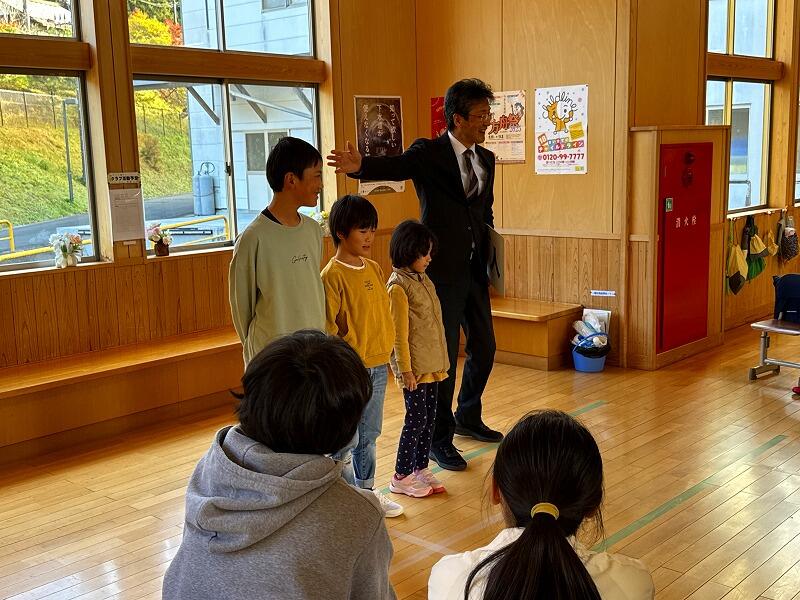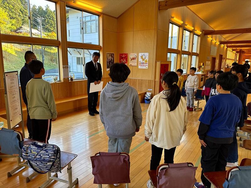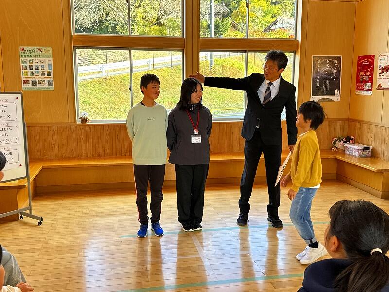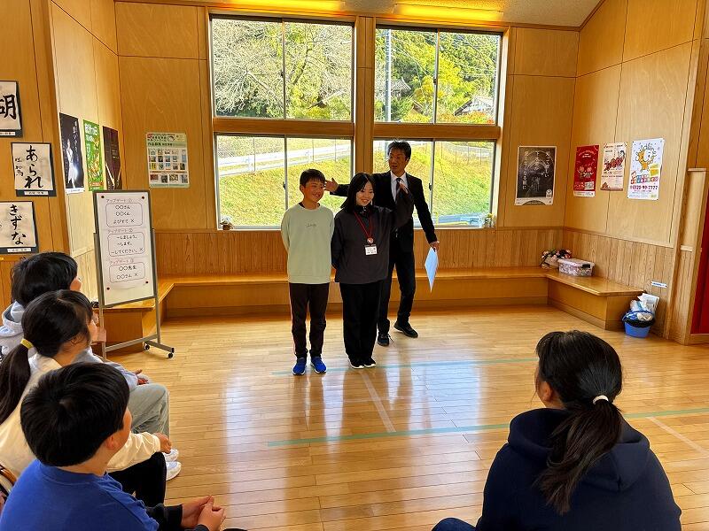 寄磯小の校長先生によるサプライズ発表もあり、子供たちはびっくり!