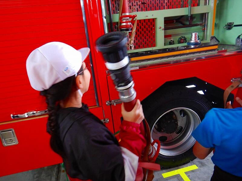 使用するホースを持たせてもらいましたが、とても大きく重たくて驚きました。