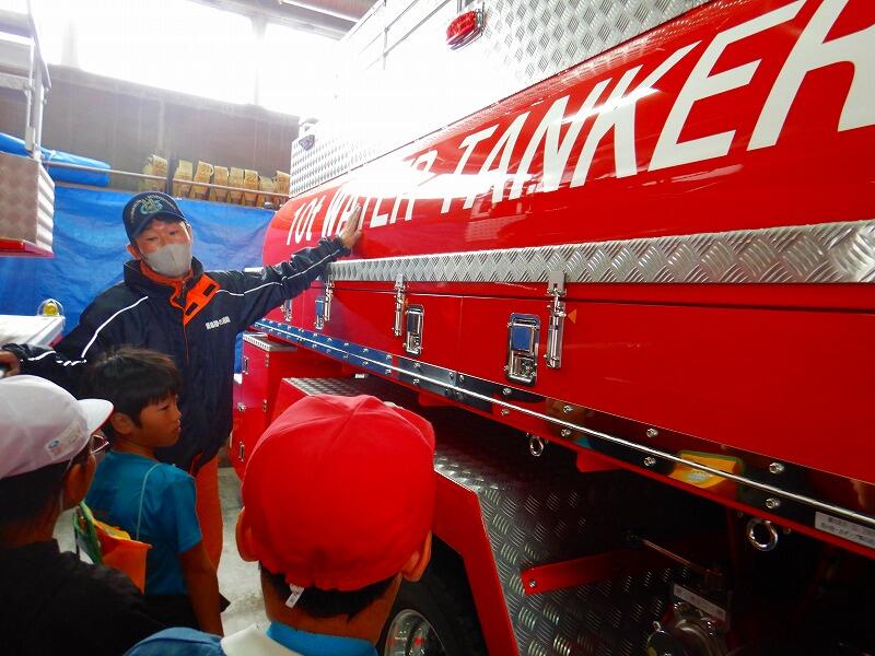 ウォータータンカー。消火のために大量の水を運ぶタンクを載せており、全長がとても長い車両でした。