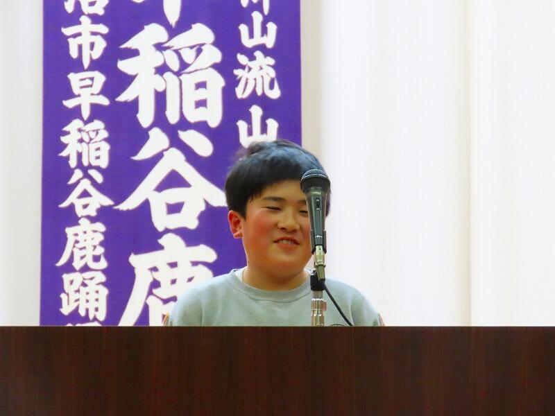 「まずは、今までずっと御指導いただいた保存会の皆さん、本当にありがとうございました」