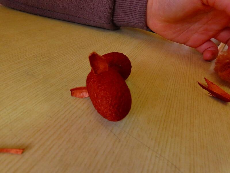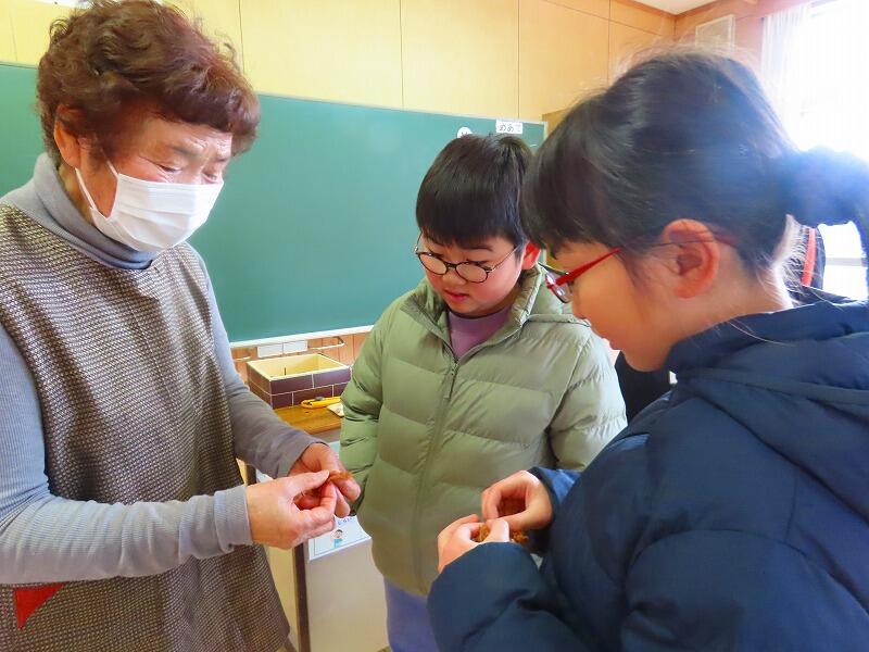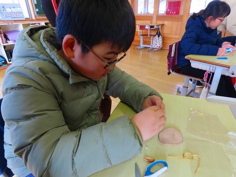 3・4年生が、養蚕学習の一環として繭細工に取り組みました。