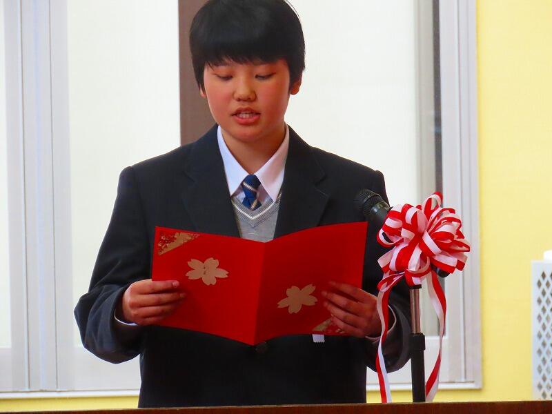 全員で台詞を共有して呼び掛けるのでなく、一人ひとりが卒業にあたり言葉を発表しました。