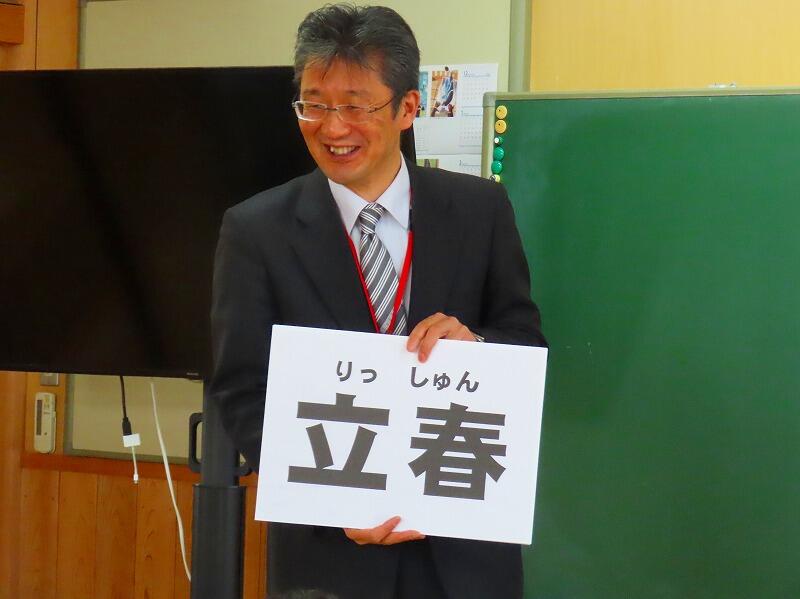 朝会では、校長が「節分」「立春」の話題から話し始めました。
