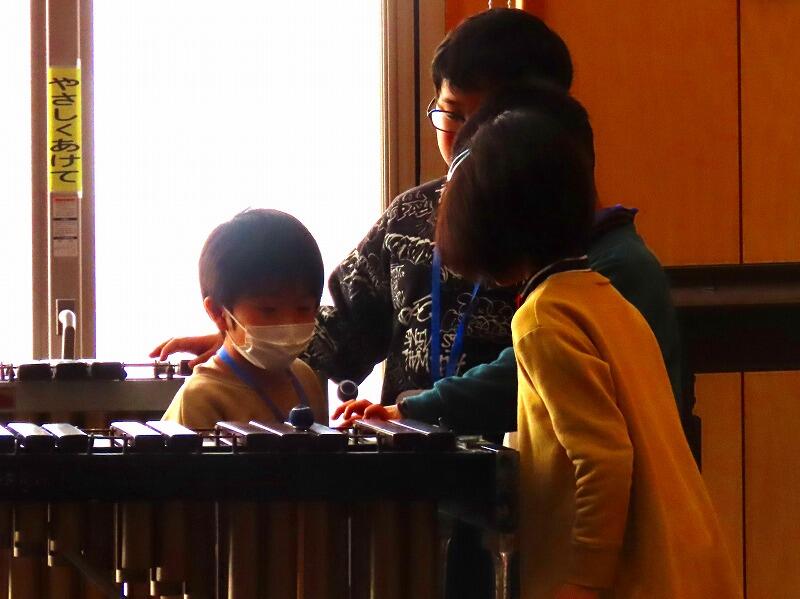 音楽室では置いてあった様々な楽器に興味をもったようです。