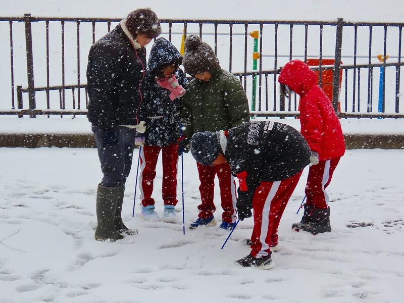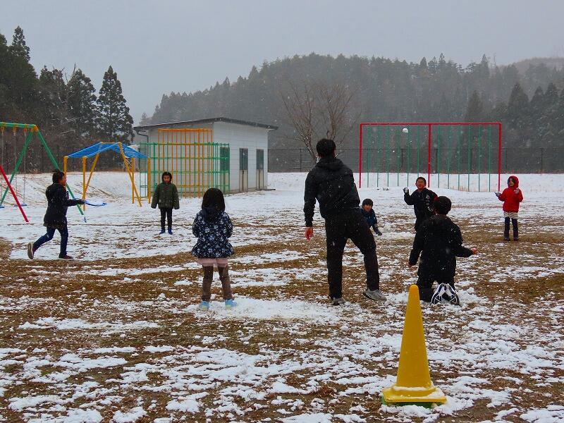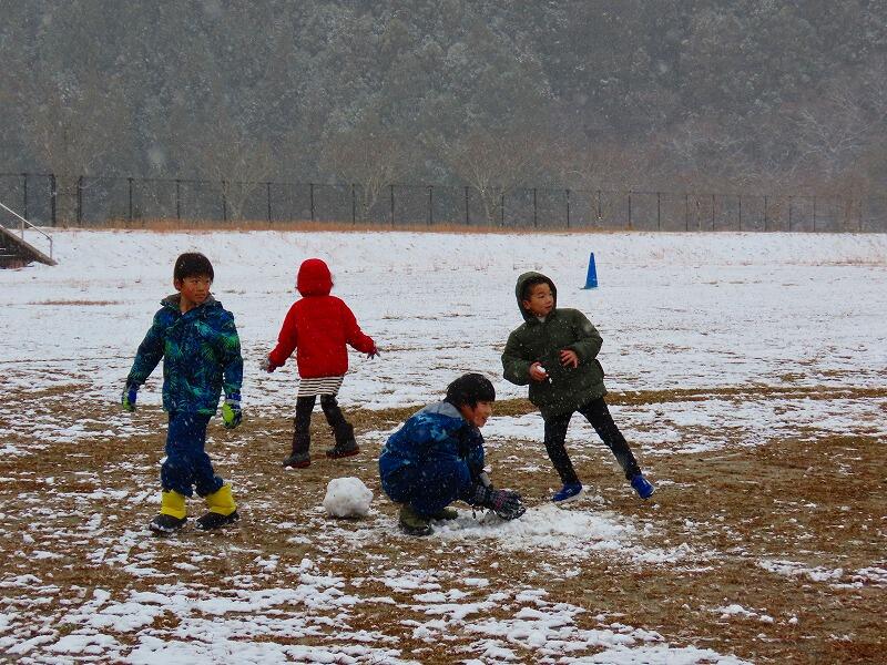 1・2年生は生活科の学習として、さっそく1時間目から校庭で遊びました。雪の日に雪で存分に遊ぶ、子供にとってこれ以上大切な学習はありません。