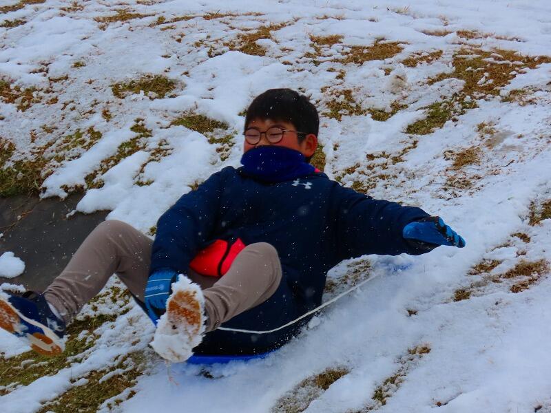 そり遊びは、お尻がびっしょりと濡れてしまうほど、夢中になって遊びました。