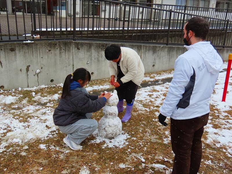 ALTと一緒につくった雪だるま。3段仕様です。