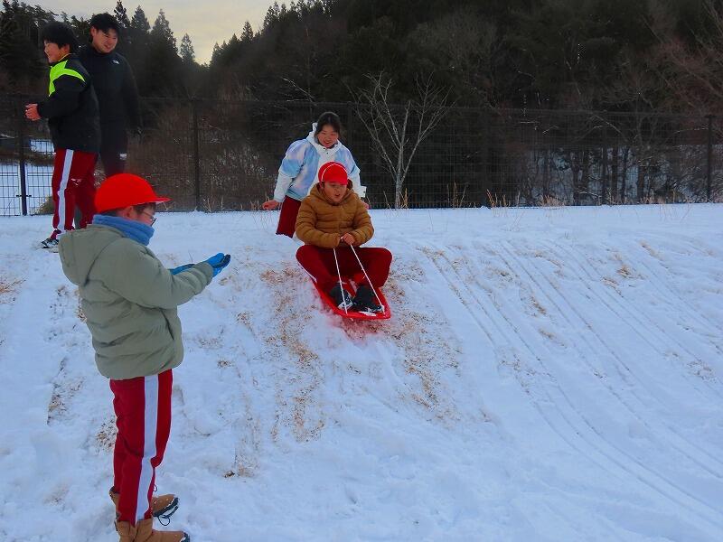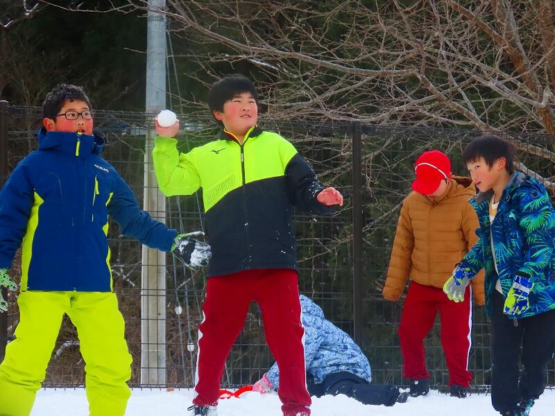 時間を遡って、今朝は校庭にたくさんの雪が積もっていたため、全校児童で雪遊びをしました。