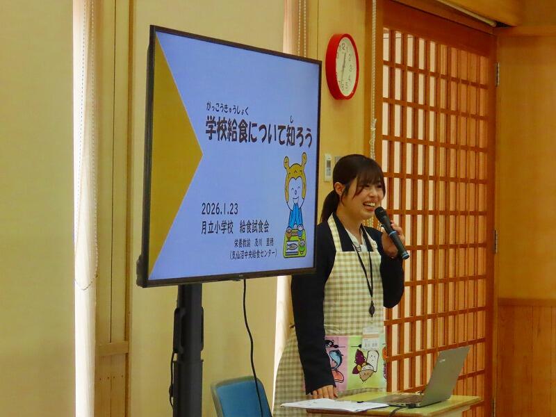 給食センターの栄養教諭をお招きして、給食の役割や大切さについて御指導をいただきました。