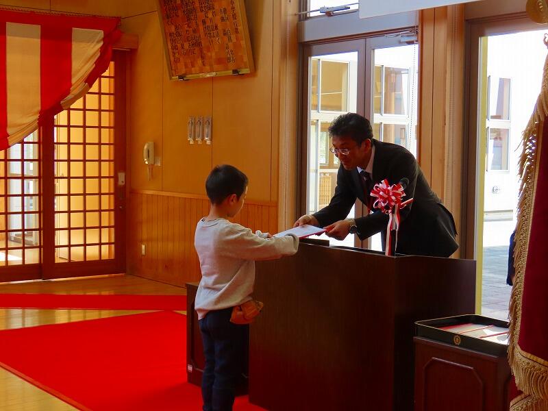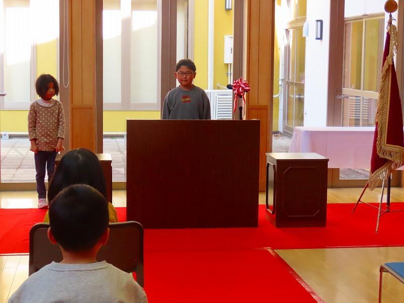 自分の席からの演台前までの歩き方も、卒業式のように立派に行っていました。