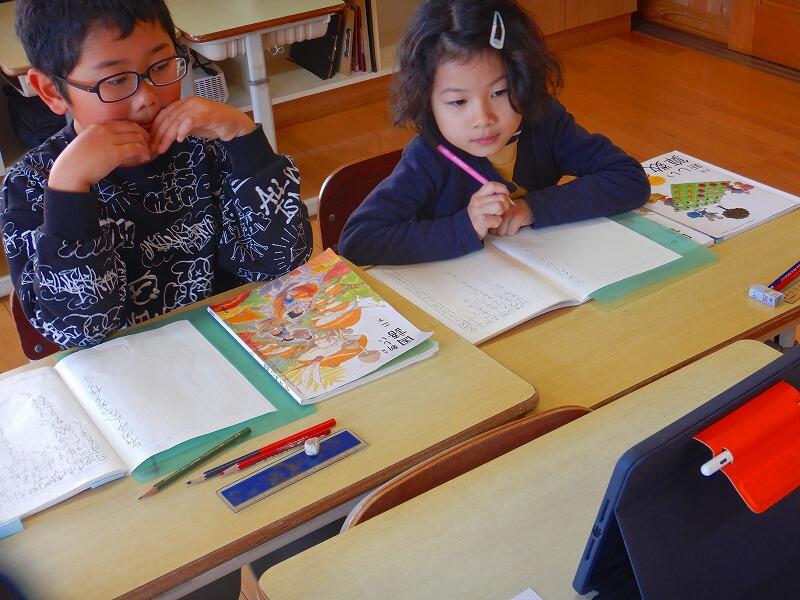 子供たちもすっかり慣れ、通常通り国語の学習に取り組んでいました。