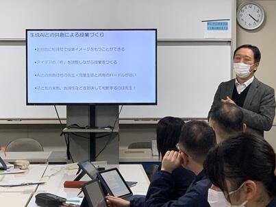 また、研修として「生成AIと考える教科の探究的な学び」と題して、稲垣先生が開発して公開しているソフトを使って演習的な講話をいただきました。