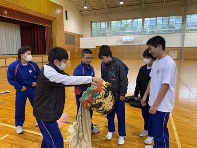 太鼓、笛、虎舞のそれぞれで技術の伝達が行われました。また、最後には、3年生から講師の先生方に御礼の言葉がありました。