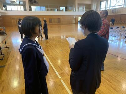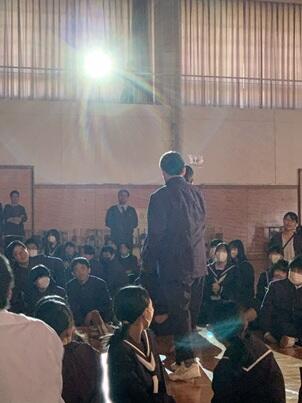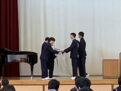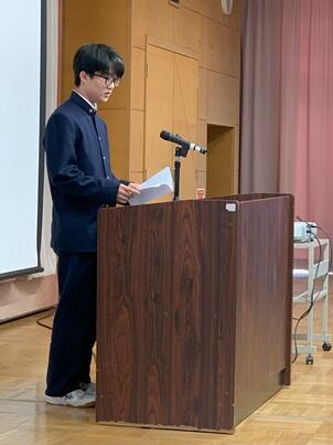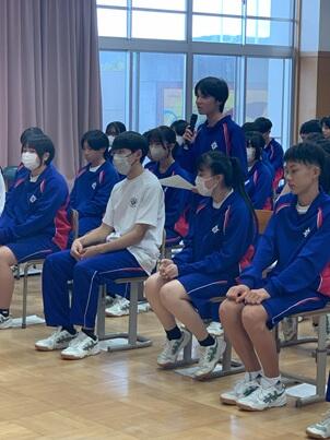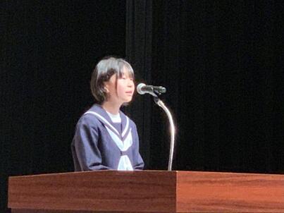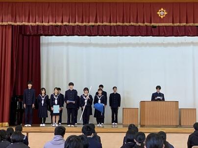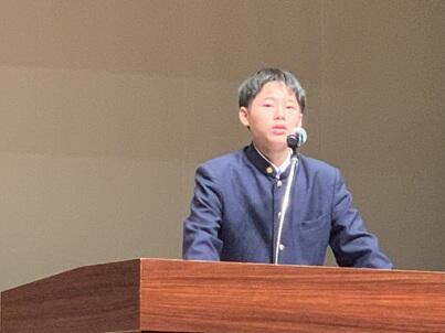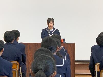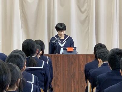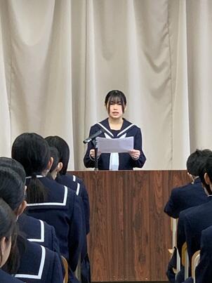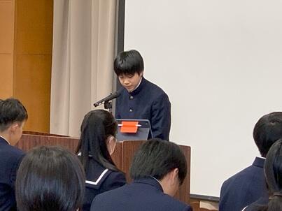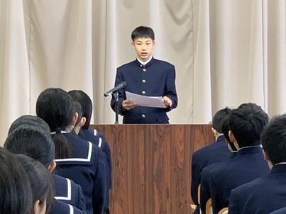 各学年代表の言葉はどれもとてもすばらしく、特に、3年生代表は、3年生の方を向いて、「残り5か月の学校生活を大切にしょう」「みんなの進路が実現できるようにがんばろう」と話し掛けました。