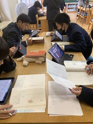 国語は「万葉集・古今和歌集・新古今和歌集」「おくのほそ道」「論語」を「和歌や漢文などの古典作品は、なぜ現代まで読み継がれているのだろうか」という単元を貫く問いを立て、12時間の単元内自由進度学習で取り組む探究的な授業でした。