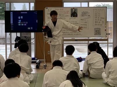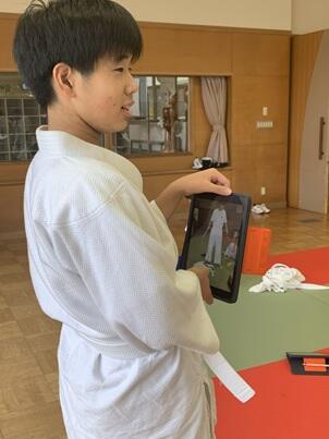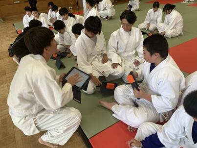 保健体育は「武道 柔道」で、「安全面に配慮し、技能と伝統的な文化を理解するためには、どのようなことが大切だろう」という問いを、単元を貫く課題として行っていました。