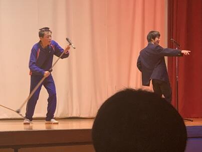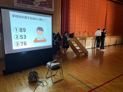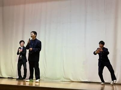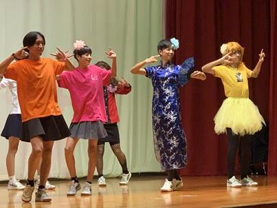 その後は、学級対抗クイズ合戦、有志の発表と続きました。ダンスあり、歌あり、カラオケあり、先生方の出演があり、大いに盛り上がりました。