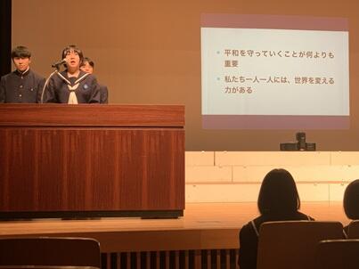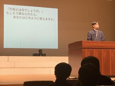 「戦争は絶対にいけない」「核兵器は絶対に使用しない、廃絶する」「自分たちで考えて平和をつくり、経験を伝えていく」などど言ったお話を心を込めてお話してくれました。
