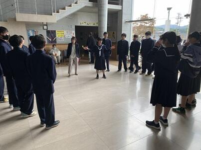 小学校で、向洋高等学校旧校舎の気仙沼市東日本大震災遺構・伝承館を訪問して、津波の恐ろしさを眼で見て体感してきていることもあり、中学校では館長の語りと被災物の物語を見て、感じてもらいたいと考えているからです。