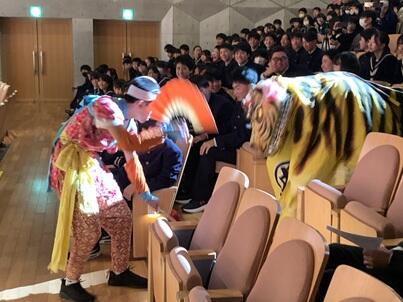 太鼓、笛、虎舞のそれぞれで技術の伝達が行われました。また、最後には、3年生から講師の先生方に御礼の言葉がありました。