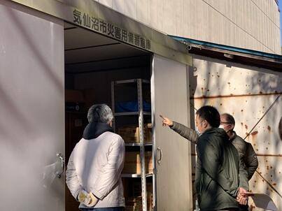 さらに、塩おにぎりの炊き出し、消防団第13分団の照明班資機材搬送車の説明などを受けました。