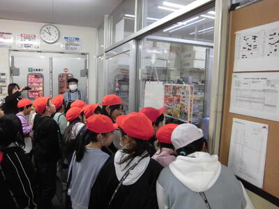 見学では、普段は入ることができないバックヤード(作業場)を見せていただきました。作業場の温度は18度に保たれ、食品が新鮮なままお店に並ぶように工夫されていることを知りました。子どもたちは、お店の裏側にも多くの人の努力と工夫があることに驚いていました。