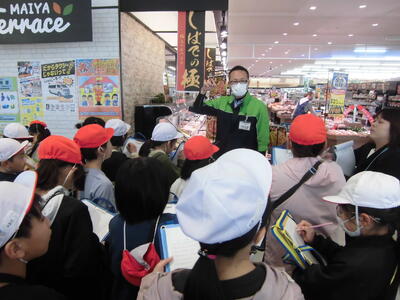 3年生は、社会科の学習「はたらく人とわたしたちのくらし」の学習の一環として、スーパーマーケット「マイヤ本吉はまなす店」を見学しました。