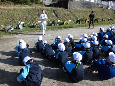 避難後の振り返りでは、校長先生と消防職員の方から講評をいただき、「真剣に訓練に取り組めていた」とのお話がありました。児童一人一人が真剣に防災意識をもって参加していた様子が印象的でした。
