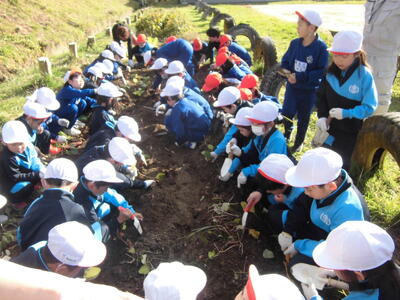 5校時には、1・2年生が生活科の学習でサツマイモ掘りを行いました。