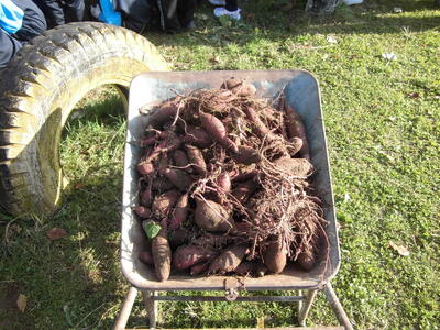 掘ったあとのつるは乾燥させてリース作りに使う予定です。サツマイモは2週間ほど追熟させてから1,2年生で分け合って持ち帰ります。秋の実りを通して、自然とふれ合う貴重な時間になりました。