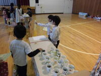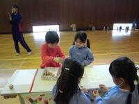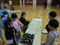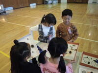 1年生が生活科の学習で作った「どんぐり」や「まつぼっくり」などの秋の自然物を使ったおもちゃを使い、幼稚園や保育所の子供たちを招待して「おもちゃまつり」を行いました。