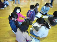 3・4校時の6年生の親子対決レクリエーションでは、「長く繋げた新聞紙を蹴り、素早く手繰り寄せる」ユニークなゲームなど、創意工夫いっぱいの競技が展開され、白熱した勝負が繰り広げられました。